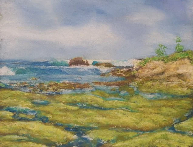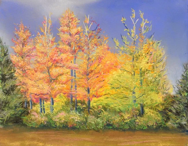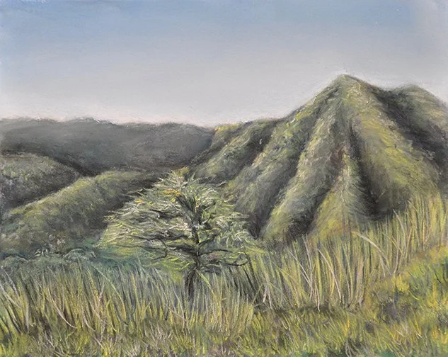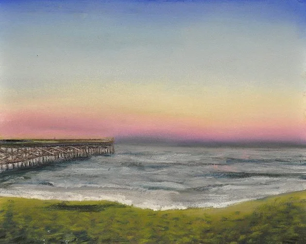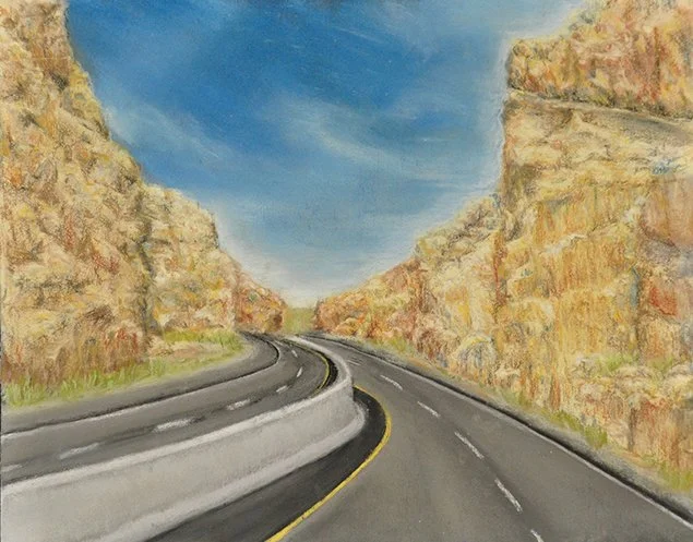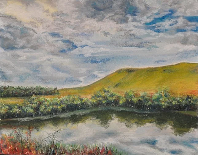 A collection of chalk pastel landscapes on sandpaper.